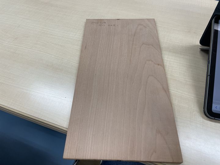 桂の経年変化。10年位経つとオレンジ色に変化。とても肌触りの良い木でした。