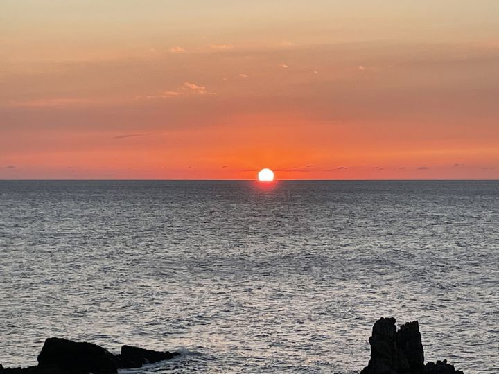 2025.10.28 下田の夕日 下田の夕日 じっと陽が沈むまで見てました。 もう久々の感動で、ウルウル! 水平線は若干丸みを帯びているように見えて、地球を感じました 天草西海岸の夕日は格別です。お勧めです