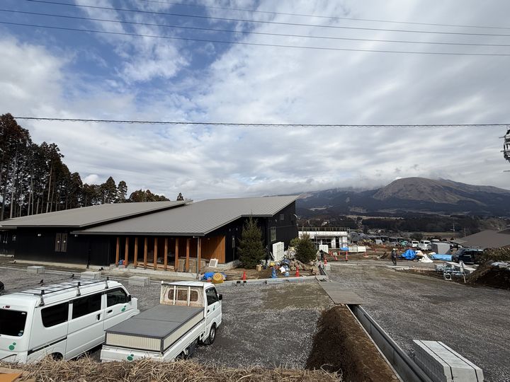 この時期の南阿蘇は気温も低く、過酷な気候の中で工事を進めていただいている職人さんには