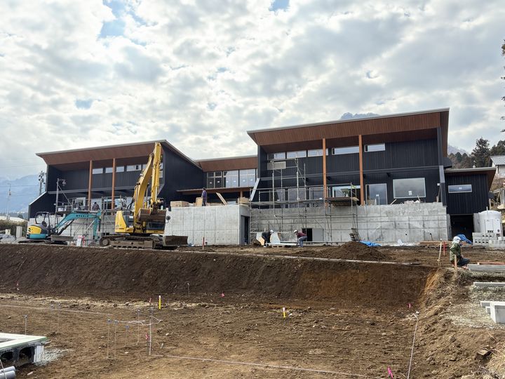 建物の周りは外構工事が始まり、植栽や駐車場の工事が始まっております。